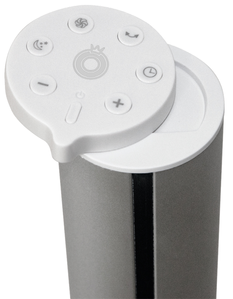 Der elegante Säulenventilator ist eine perfekte Lösung, um Ihren Arbeitsplatz oder Wohnraum mit frischer Luft zu versorgen. Er ist leise und sicher und bietet Ihnen mit seinem praktischen Design und einer handlichen Touch-Steuerung in 9 Ventilationsstufen ein Maximum an Komfort. Der horizontale Oszillationsmodus sorgt für eine optimale Verteilung der Luft. Ausserdem können Sie den besonders starken AIR-Modus bequem per Fernbedienung aktivieren und sich auch während der Nacht vom Schlafmodus des Gerätes versorgen lassen.
